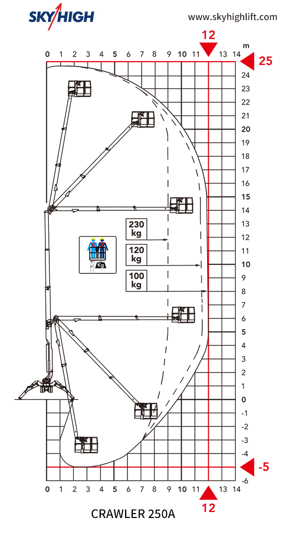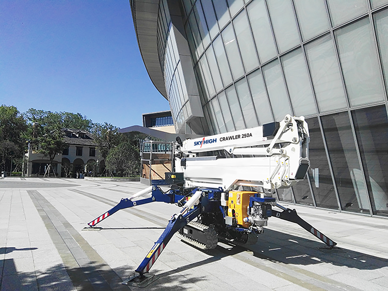 CRAWLER 250A spider lift is well-known for its compact size, elegant design, and durability. All pipelines are built within the boom, with the Can-bus control system and dual safety sensor protection. Following the system, the entire machine features a double telescopic curved arm design that provides unrivaled advantages in terms of horizontal extension and cross-height. It is an ideal spider car for inside confined spaces. CRAWLER 250A is currently used in commercial hubs such as stadiums, high-rise office buildings, airports, train stations, and other locations.