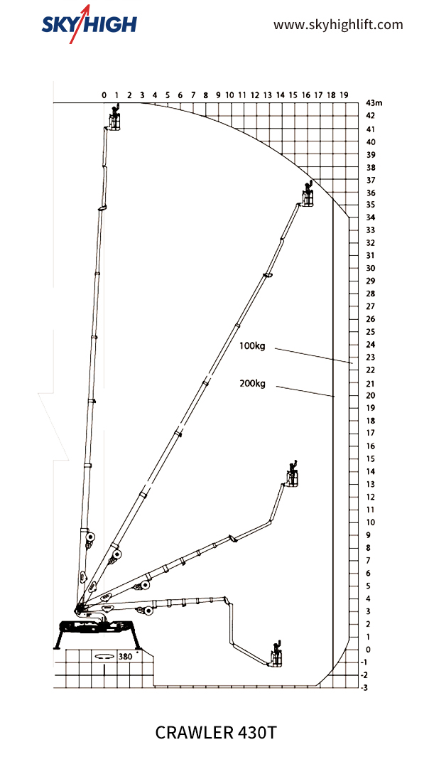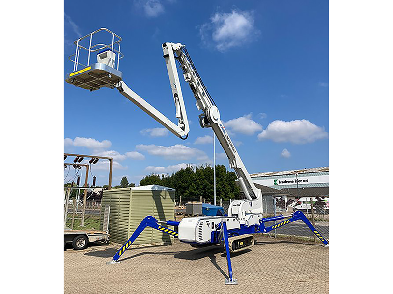 The CRAWLER 430T spider lift is a compact, yet remarkably powerful and versatile machine, featuring dual slender arms. Remarkably agile, it can easily manoeuvre through narrow passageways, fitting through doorways as small as 1.39 metres wide and 1.95 metres high. The CRAWLER 430T has undergone significant optimisation, incorporating innovative features such as twin chain booms, automatic positioning of the outriggers, and the ability to steer both the outriggers and the chassis directly from the basket. These advancements make this spider lift truly unique, meeting modern demands for speed, usability, and safety. The CRAWLER 430T is renowned for its exceptional manoeuvrability and intuitive user experience.